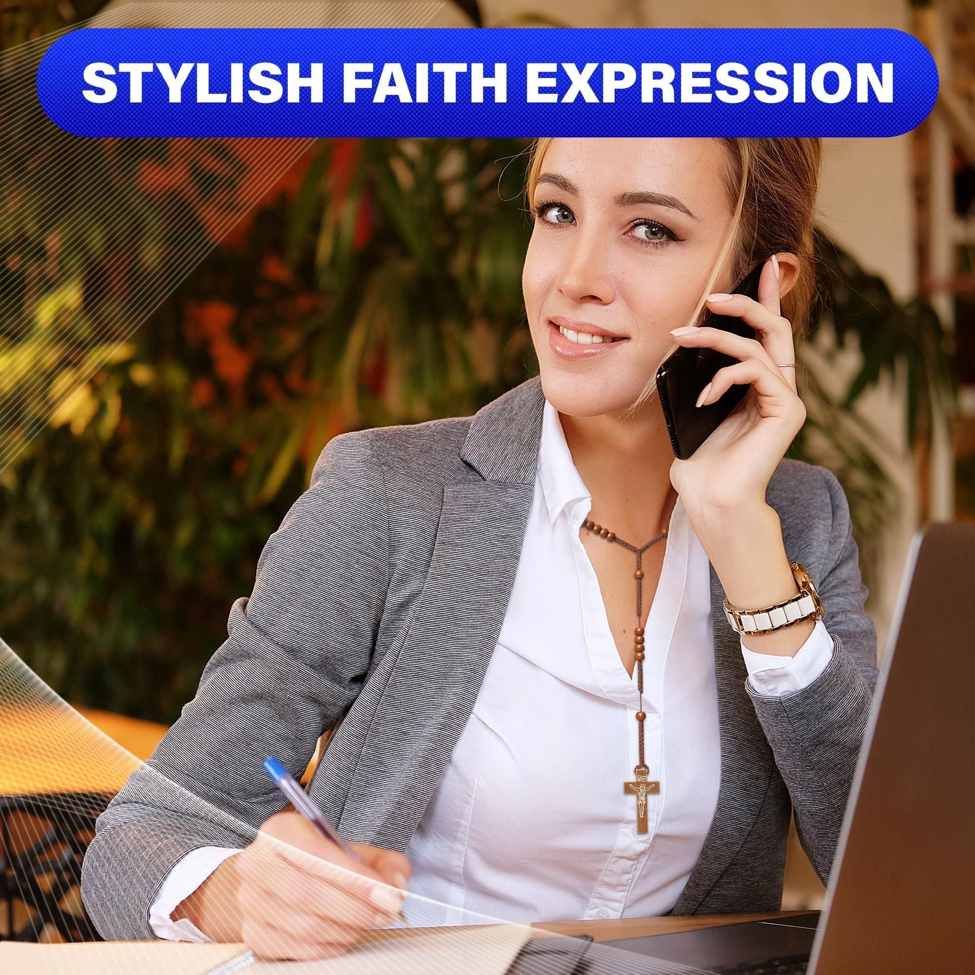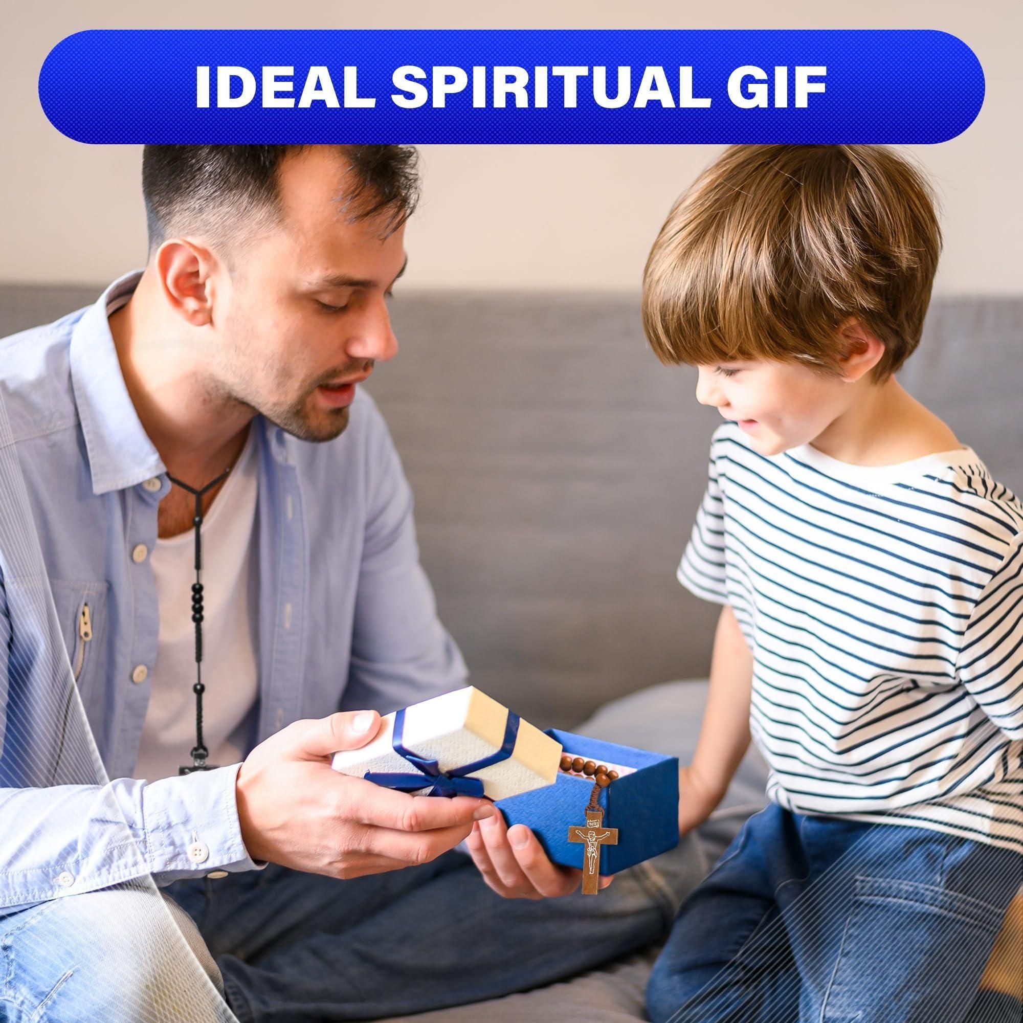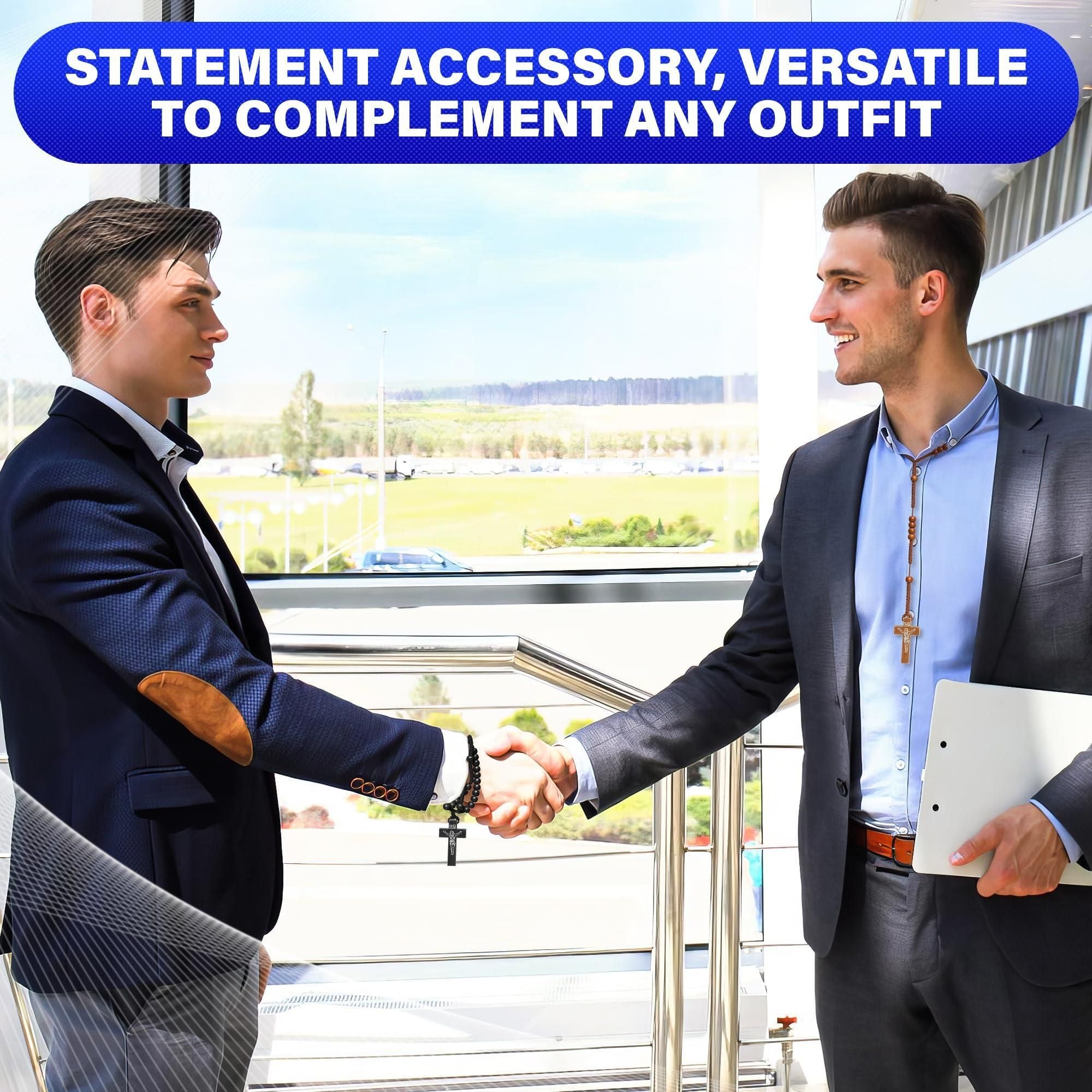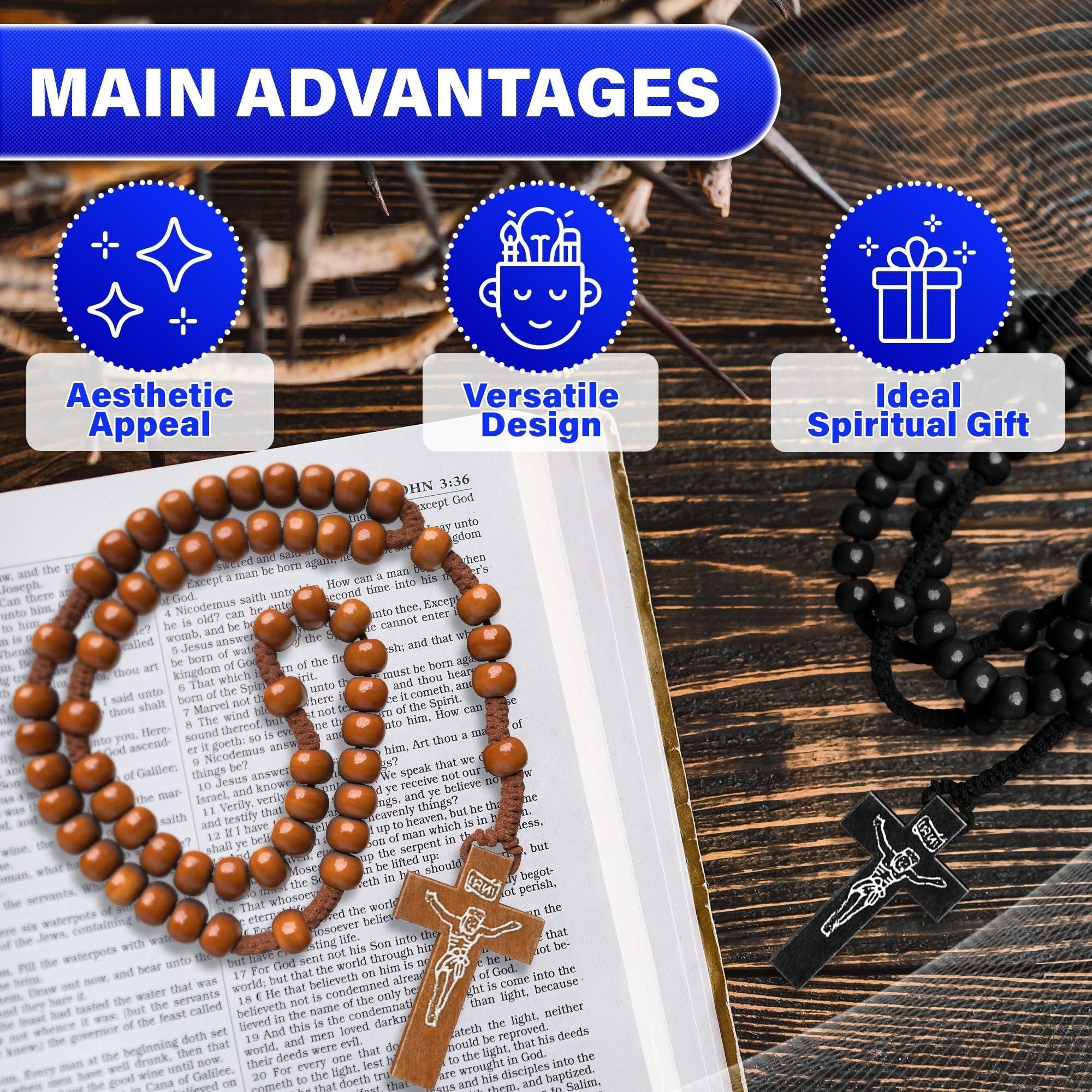 2pcs wooden beads rosary necklace handmade wooden crosses pendant necklace jesus cross necklace for men tan and black cross necklace cross necklaces for women with adjustable necklace chain